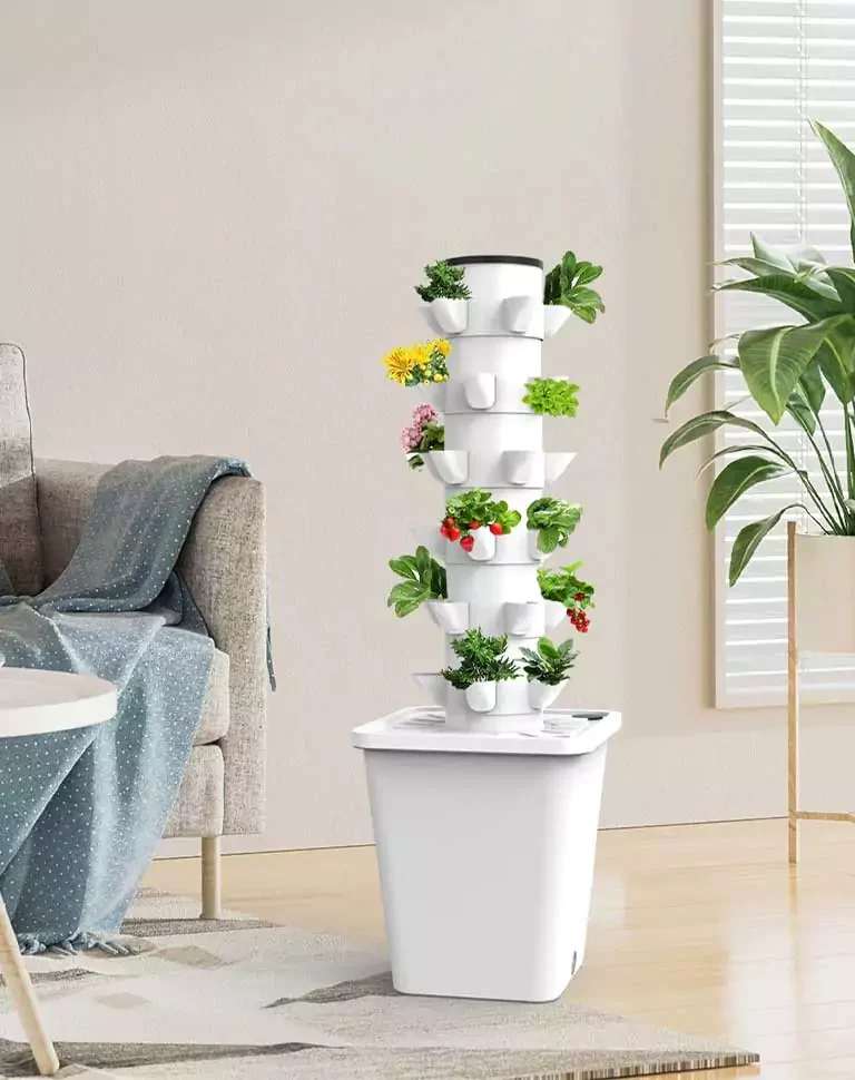 Revolutionize your gardening space with a vertical hydroponic tower, maximizing efficiency and nutrient delivery.