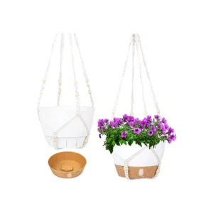 QCQHDU 2 Pack Macrame Plant Hanger Hanging Planters Set,8 Inch Indoor Outdoor Hanging Plant Pot Basket,Hanging Flower Pot with Drainage Hole with for Garden...
