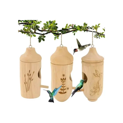 OROGHT Hummingbird House – Natural Wooden Hummingbird Houses for Outside Hanging, Gardening Gifts Home Decoration 3 Packs
