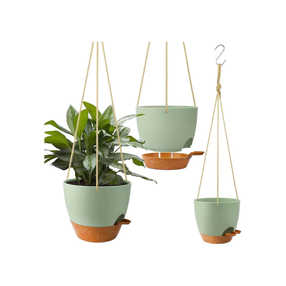 • 🍀【Environmentally Material, Easy to Clean】Adopt plastic Self Watering Hanging Pots made of PP material, durable recyclable plastic, protect plants and soil. The high-quality polypropylene planter feels sturdy without being too heavy. The modern matte finish is elegant and the planter is easy to clean. These indoor plant pots are the perfect gardening gift for mom, dad, sister or plant lover friend.