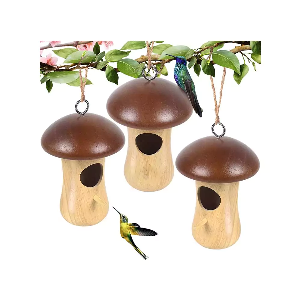 Home Home and Garden Hummingbird House,2023 New Mushroom Wooden Hummingbird Houses for Outside for Nesting, Gardening Gifts,Home Garden Decoration,3 Pack